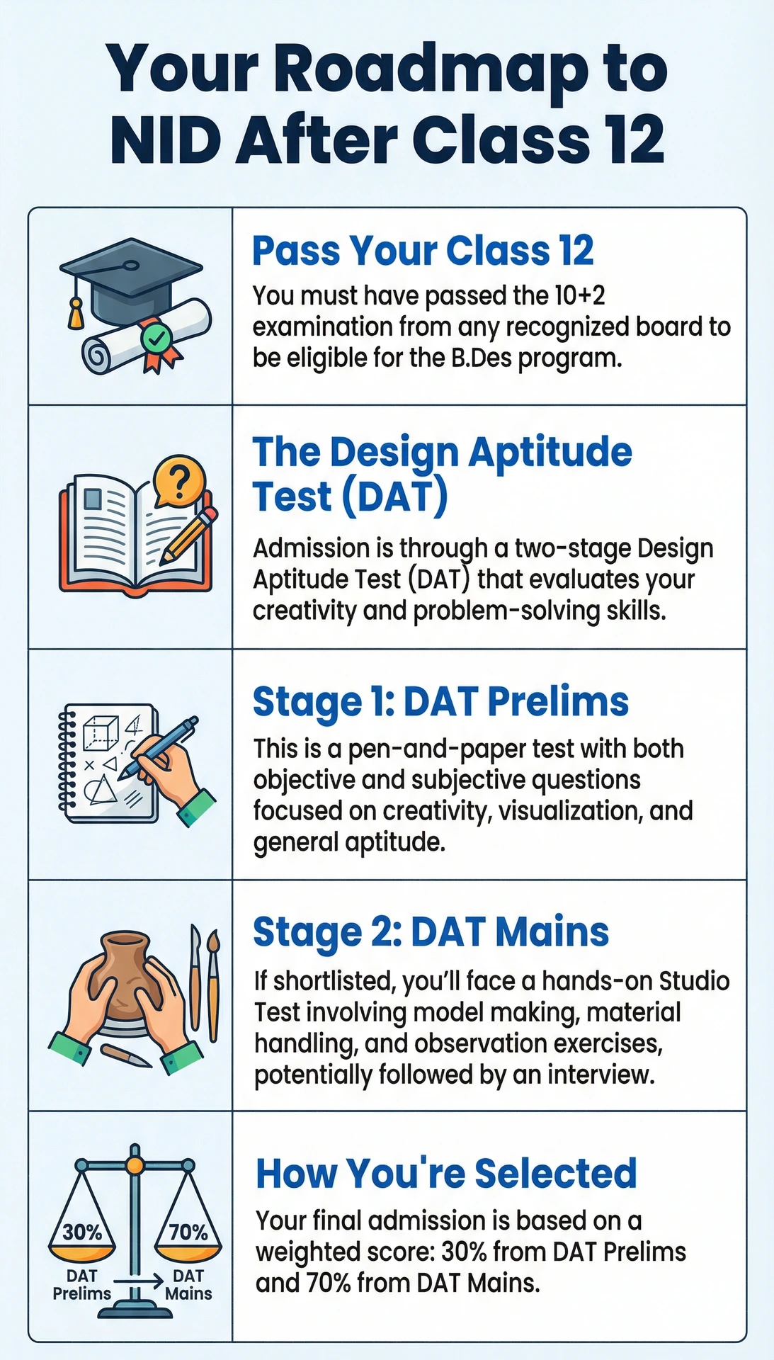 conducts Design Aptitude Test (DAT) in two stages: